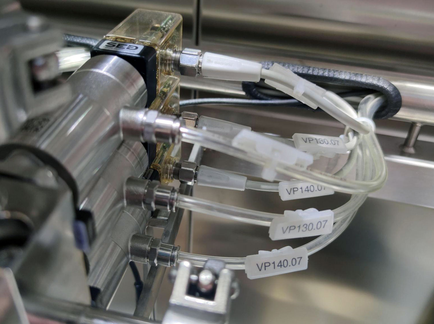 Die in der Desinfektions-Abfüllanlage verbauten Membranventile von SAMSON SED werden in der Herstellung von pharmazeutischen und sterilen Produkten vorwiegend zum Absperren, Dosieren, Entnehmen, Zuführen, Probenehmen, Verteilen und Mischen von Durchflussmedien sowie zum Reinigen nach dem SIP- und CIP-Verfahren eingesetzt.